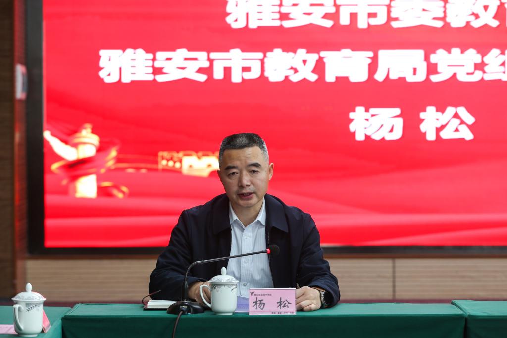 杨松对研究中心的成立表示热烈祝贺,强调思政课是落实立德树人根本任务的关键课程,推进大中小学思政课一体化建设是思政课建设的重要内容、关键环节。希望学院与各成员单位共同努力,深入探索新时代雅安大中小学思政教育新形态和一体化实践新模式,在理论上取得新突破、在实践上取得新成效,为雅安市全面提升各学段人才培养质量贡献力量。