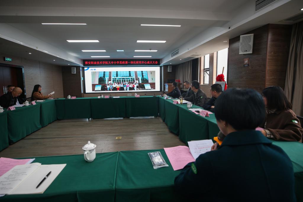 最后,袁久胜在讲话中表示,成立研究中心,推进雅安市大中小学思政课一体化建设,是贯彻落实习近平总书记关于学校思想政治理论课建设讲话精神的具体举措。对推动雅安教育事业高质量发展,助力人才强市和川西教育中心建设,具有重要意义。他提出了三点希望和要求,一是要坚定不移贯彻落实好党的二十大精神和习近平总书记关于思政教育的重要指示精神,办好人民满意的教育;二是要多角度思考、全方位认识“大中小”的深刻内涵,一体化开展教学研讨、创新教学、整合教学资源,打造具有地域特色的雅安思政品牌;三是要做好思政教学,落实立德树人根本任务,借助一体化研究中心平台,奋力开创“大思政课”建设新局面。