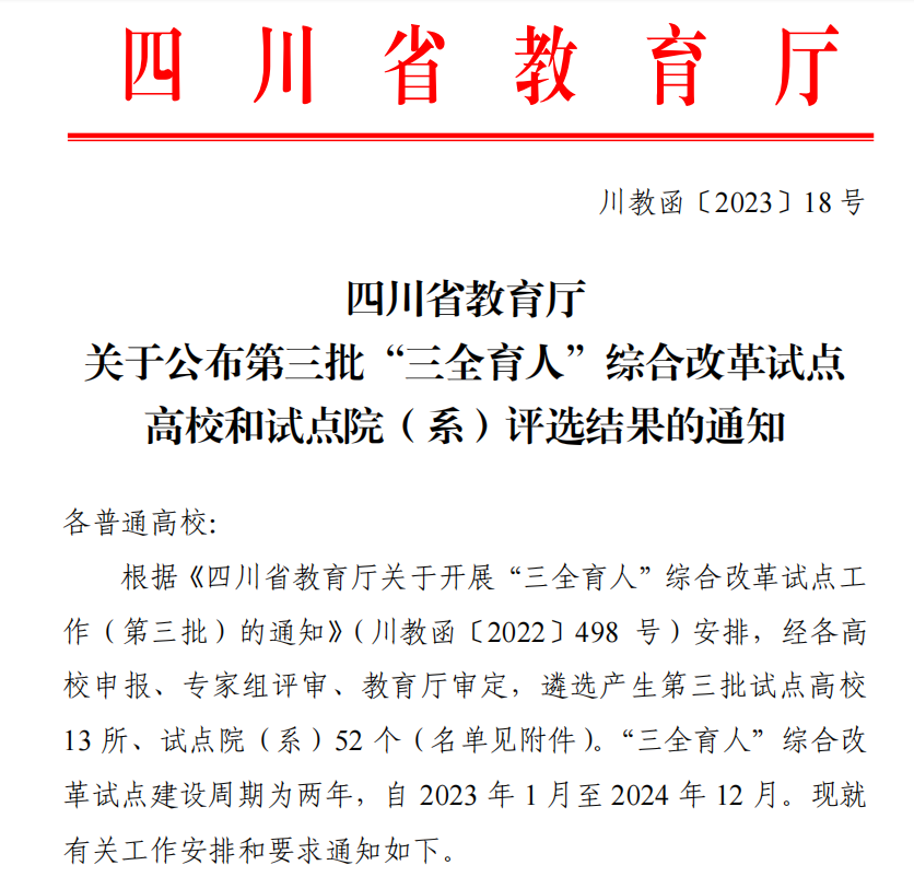 日前,省委教育工委公布全省第三批“三全育人”综合改革试点高校评选结果,经报送单位推荐、专家组评审、教育工委审定,beat365官网成功入选全省“三全育人”综合改革试点高校,建设周期为2年。