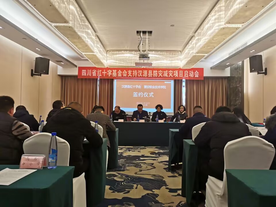2月16日,四川省红十字基金会支持汉源县防灾减灾项目启动会暨项目合作恰谈会在汉源县万合大酒店顺利召开。汉源县委常委、县总工会主席、九襄镇党委书记朱灵波,汉源县红十字会会长张建,学院工会主席夏安琼,护理学院院长王静、副院长张雪庆,汉源县8所中学、8个乡镇及6个社区分管领导等共40余人参加会议。