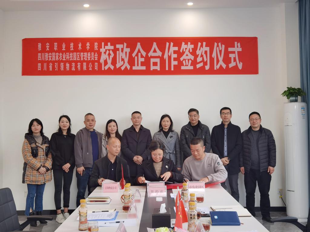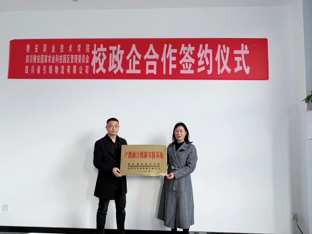 为充分利用校政企三方优势资源,进一步加强校政企的深度合作,达成“资源共享、技术共研、人才共育、平台共建”的合作目标,推进职业教育与地方产业的高质量发展,3月8日,由学院、雅安国家农业科技园区管委会和四川省引领物流有限公司共建的“beat365英国官方网站产教融合创新实践基地”签约授牌仪式在雅安国家农业科技园区举行。学院党委委员、纪委书记杨洪媛,副院长彭裕红出席仪式,产教融合处、继续教育与国际交流处、药学与检验学院、经济与管理学院相关负责人参加会议。