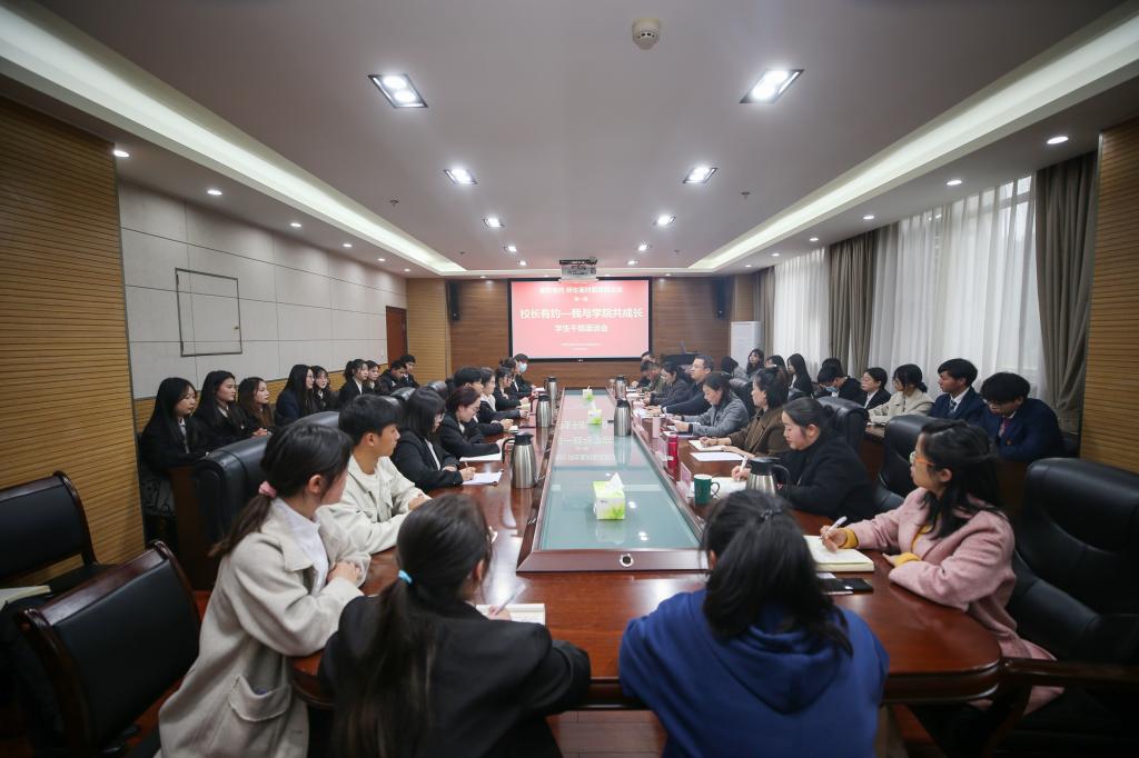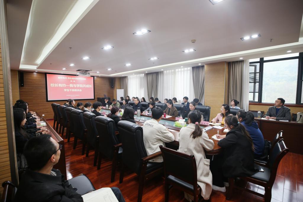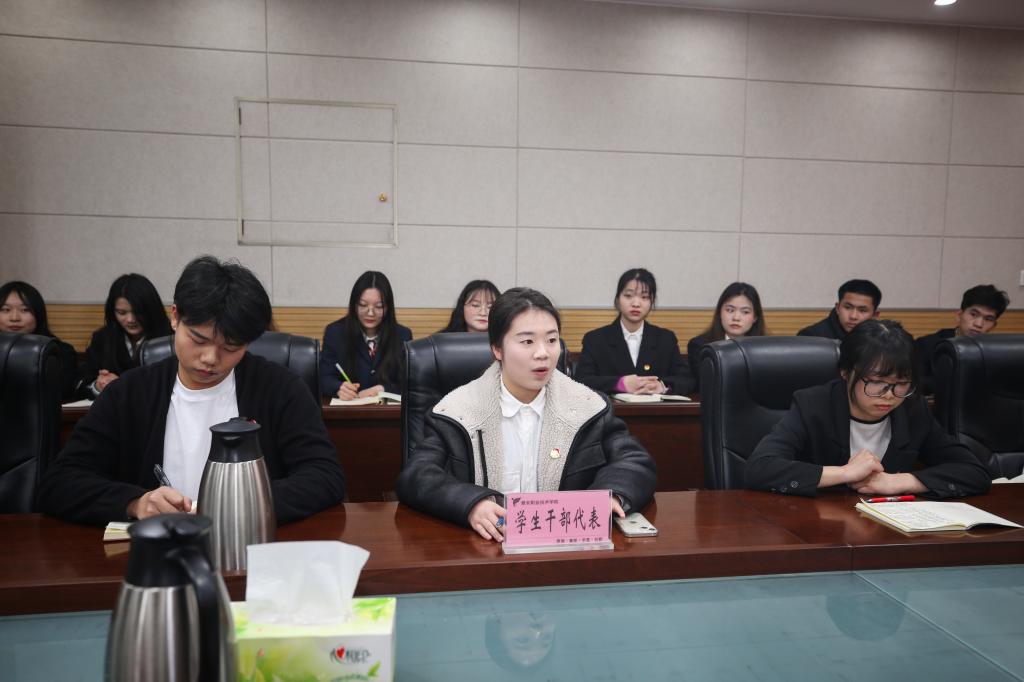 3月7日,“雅职有约 师生面对面”系列活动第一期在经开区校区综合楼303会议室顺利开展。本次活动主题为“校长有约-我与学院共成长”学生干部座谈会,学院党委副书记、院长黄诚,团委、教务处、学生处等相关部门负责人与来自各二级学院的32名学生干部代表面对面交流,倾听学生心声,共话学院建设发展。座谈会由学院党委委员、纪委书记杨洪媛主持。
