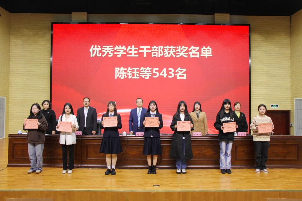 3月28日,学院2022年度学生表彰大会在经开区校区聚雅厅举行。学院党委副书记、院长黄诚,党委副书记付洪涛,党委委员、副院长樊先茂,工会主席夏安琼,党委委员、组织部部长、人事处处长刘永恩出席大会并为获奖集体和学生代表颁奖,学院各职能部门、二级学院负责人,辅导员及学生代表300余人参加会议。会议由学生处副处长王飞主持。