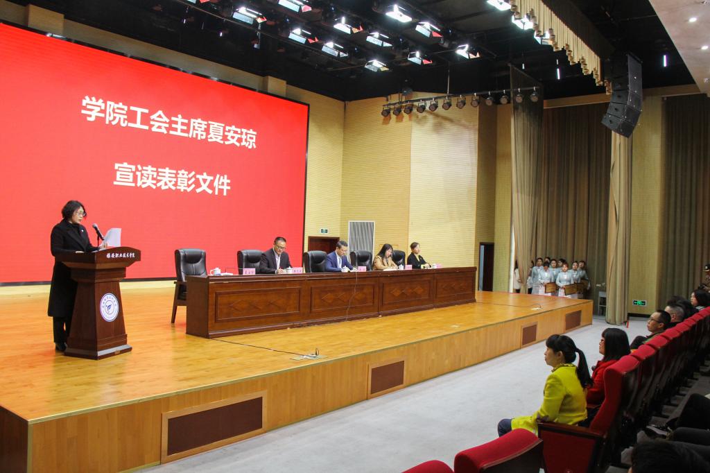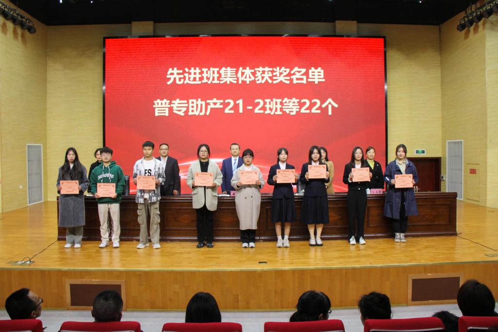 夏安琼宣读了《beat365英国官方网站关于2021-2022学年国家奖学金、国家励志奖学金获奖情况的通报》《beat365英国官方网站学生处关于表扬 2021-2022 学年学院奖学金、先进班集体、三好学生、优秀学生干部、2023 届校级优秀毕业生的通知》。梅慧同学荣获2021—2022学年中职国家奖学金,张丽萍等17名学生荣获2021—2022学年本专科国家奖学金,李梦琴等586名学生荣获2021—2022学年本专科生国家励志奖学金。李艳等1073名学生荣获学院奖学金,岳琳红等582名学生荣获“三好学生” 称号,陈钰等543名学生荣获“优秀学生干部” 称号,宋丰江等321名学生荣获“优秀毕业生” 称号,普通专科助产专业2021级2班等 22 个班集体荣获“先进班集体” 称号。