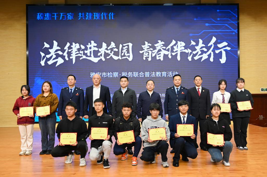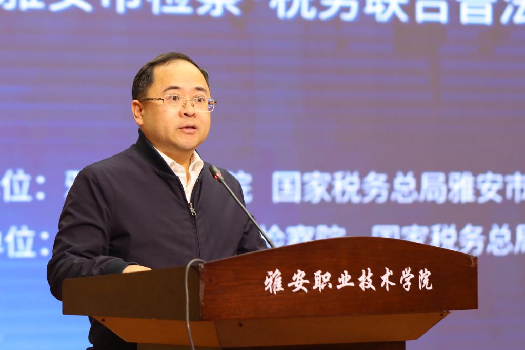 学院党委委员、副院长樊正康,名山区人民检察院党组成员、副检察长辛瑞,名山区税务局党委书记、局长王雅各,学院相关部门中层干部,大学生普法志愿者及300余名学生代表参加仪式。