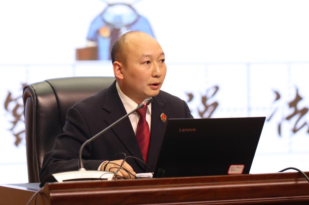 樊正康代表学院致辞,他向出席此次活动的嘉宾、老师、同学们表示热烈欢迎,并表示“法律进校园”是贯彻依法治国方略的一项重要的战略性、基础性工作,学院与检察院、税务局联合共建“检察、税务联合普法基地”,将共同推进校园普法走深走实;希望同学们尊崇法律、敬畏法律、信仰法律,将法律内化于心外化于行,自觉成为社会主义法治的忠实崇尚者、自觉遵守者和坚定捍卫者!