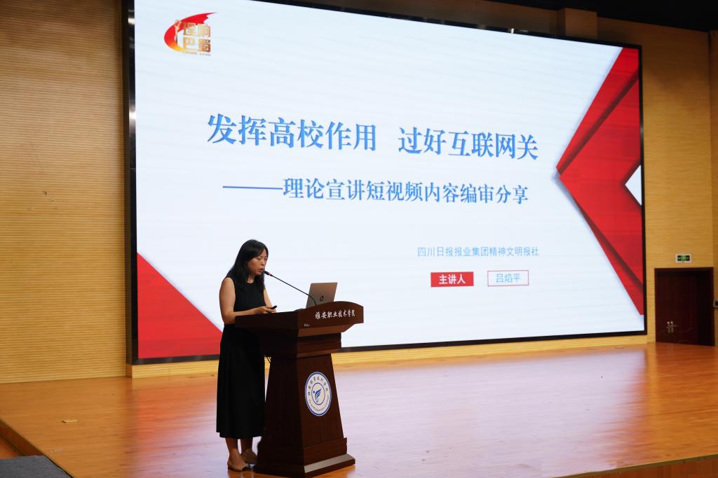 会上,四川省网络文化协会大数据与舆情专委会秘书长吴松涛作了题为《舆情风险意识提升与舆情防控源头》的辅导报告,精神文明报社项目拓展部副主任吕焰平以《发挥高校作用过好互联网关——理论宣讲短视频内容编审分享》为题作了辅导报告。西南石油大学、西华大学、四川交通职业技术学院、四川工程职业技术学院、四川三河职业学院、beat365英国官方网站等六所高校围绕党建思政、三全育人、学生工作等方面作了经验交流发言。