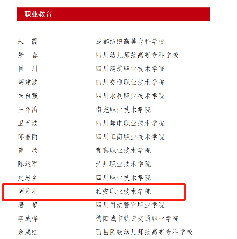 近日,四川省教育厅、四川省人力资源和社会保障厅发布关于表彰四川省优秀教师优秀教育工作者和教育工作先进集体的决定。学院教师胡月刚获得“四川省优秀教师”称号。