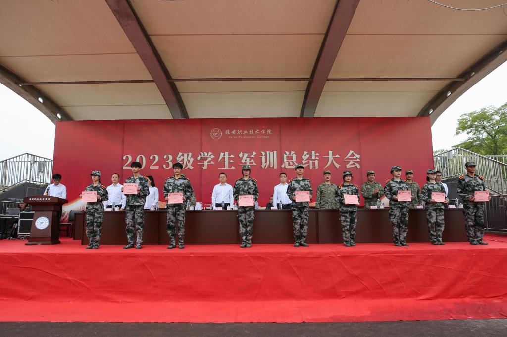 总结大会在国歌声中拉开序幕。黄诚寄语新生,发表大会总结致辞。黄诚充分肯定了本次军训的成果,并对本次军训的教官表示感谢。他表示,同学们要将在军训中养成的良好行为规范、优秀团队精神发扬至未来的学习生活中,涵养“厚德”情怀,做温柔的雅职青年;端正“重能”态度,做奋发的雅职青年;秉承“求是”理念,做热血的雅职青年;拥抱“创新”精神,做逐梦的雅职青年。
