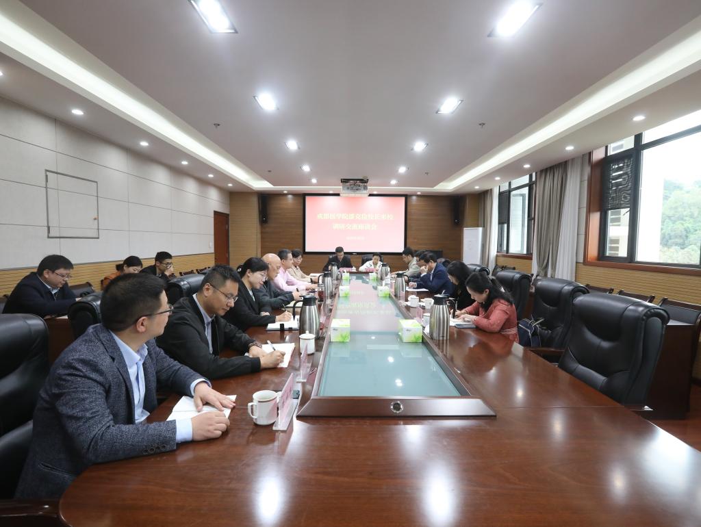座谈会上,黄诚代表学院对潘克俭一行的到来表示热烈的欢迎。他首先对成都医学院在人才培养、继续教育、实训基地建设等方面给予学校的支持和帮助表示感谢。学院紧跟现代职业教育发展,历经四川省示范性高等职业院校、四川省优质高等职业院校建设,在农村基层医学生人才培养等方面取得了系列成绩。目前,学院正处于四川省“双高计划”建设关键期,将紧紧围绕“内涵提质”,努力在特色人才培养、专业群建设、高层次人才队伍、校企合作和产教融合、科教融汇、国际交流等方面实现新发展,取得新突破。潘克俭表示,未来两校可以在本科层次职业教育人才培养改革试点、高层次师资队伍建设、科学研究、继续教育等方面进一步开展合作,服务地方高质量发展。
