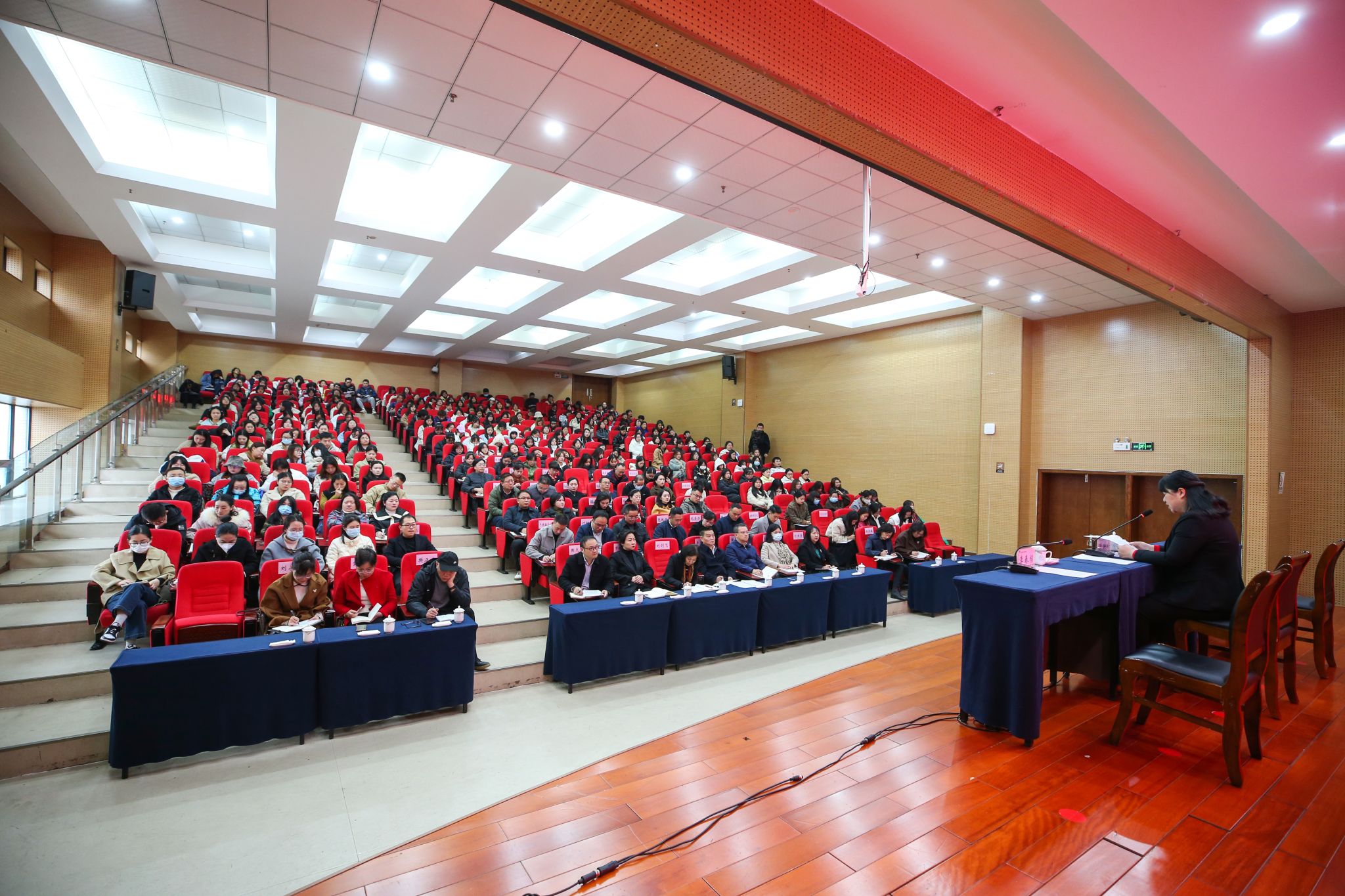 市政府秘书长刘剑飞、市委宣传部常务副部长徐涛、市委教育工委书记王欣,学院党政领导班子成员、中层干部和师生代表,共计280余人聆听了宣讲报告。