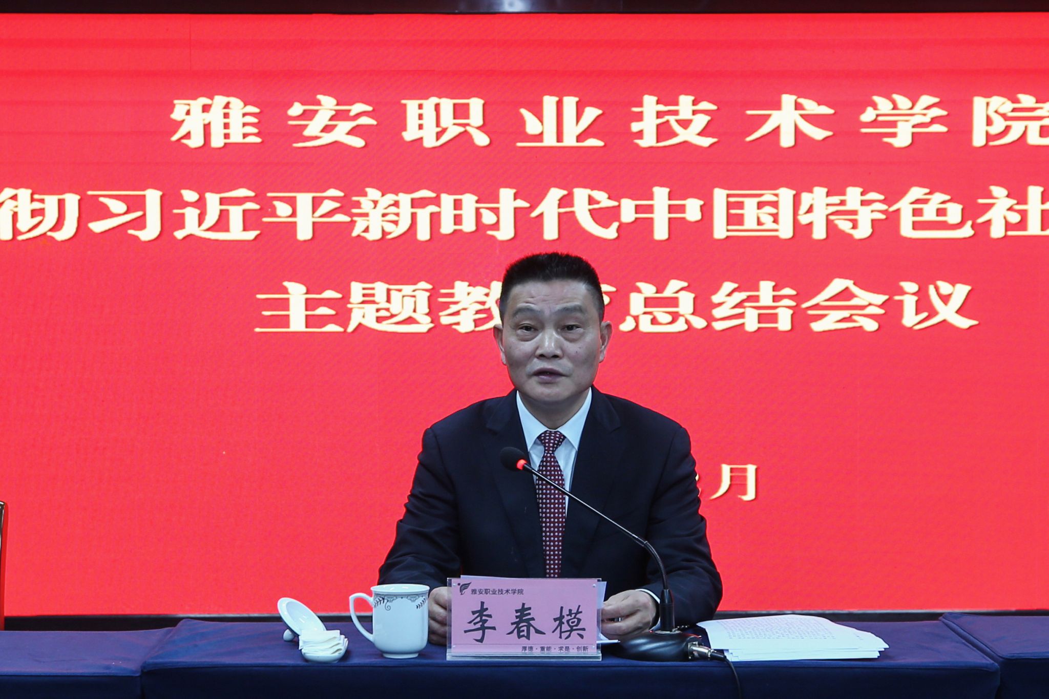 李春模指出,主题教育开展以来,在省委督导组和市委主题办的精心指导下,学院党委坚决把开展主题教育作为重大政治任务,深刻领悟其重大战略意义和深远政治考量,以高度的政治自觉、思想自觉、行动自觉,认真贯彻习近平总书记系列重要讲话精神,团结带领全校师生,紧紧围绕“学思想、强党性、重实践、建新功”的总要求,以一以贯之的定力压实工作责任,以一刻不停的自觉夯实理论武装,以一抓到底的态度务实调查研究,以一往无前的劲头扎实推动发展,以一寸不让的决心做实检视整改,以一脉相通的理念抓实建章立制,持续推动主题教育往深里走、往实里走、往心里走,形成了“全覆盖学习、全过程指导、全方位统筹、全链条落实”的生动局面,较好完成了以学铸魂、以学增智、以学正风、以学促干的根本任务,突出了雅职特色,达到了预期目的。