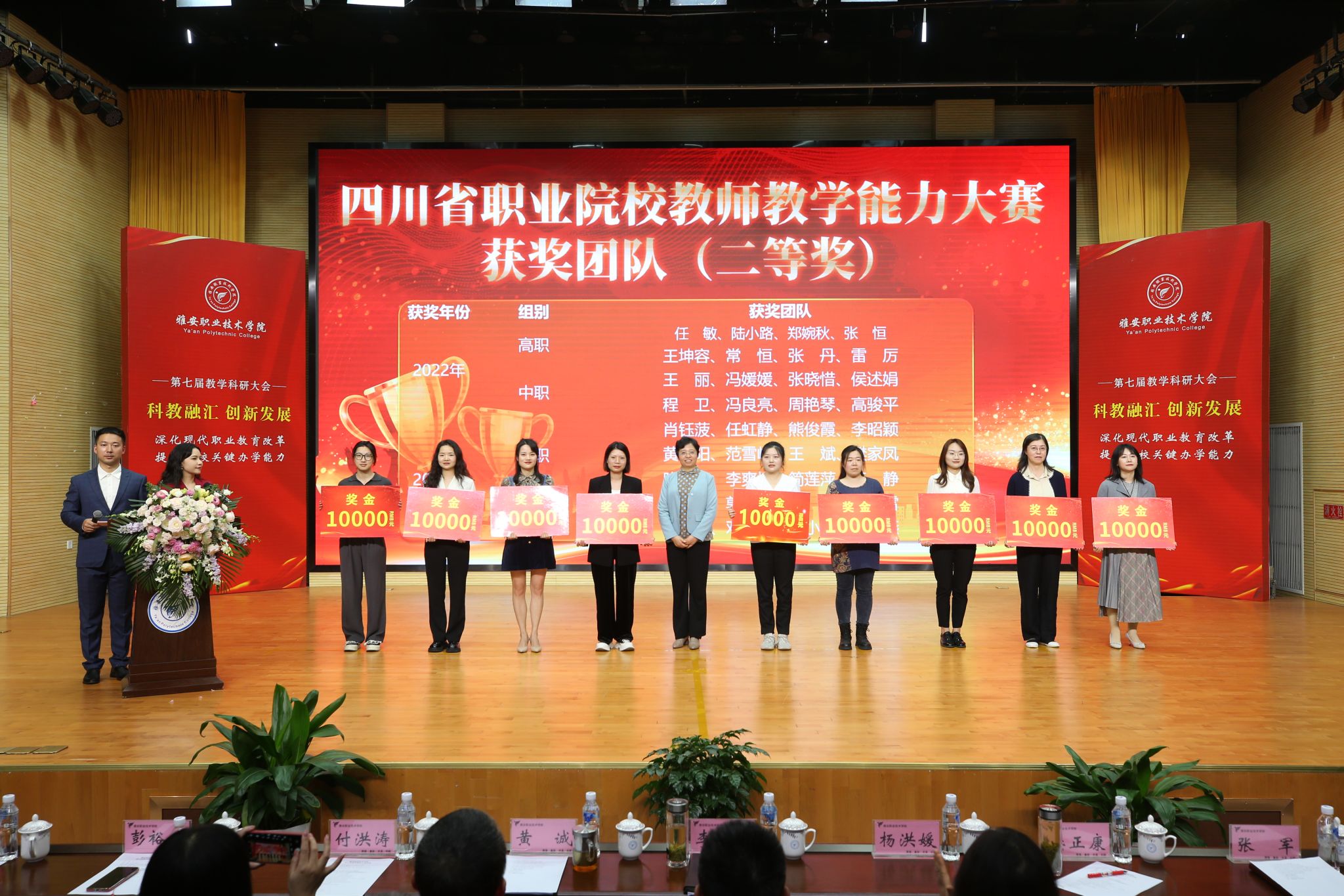 会议表彰了在教学科研工作中取得优秀成绩的集体和个人,涵盖了“三教改革”“科教融汇”“以赛促教”三个方面19个奖项。