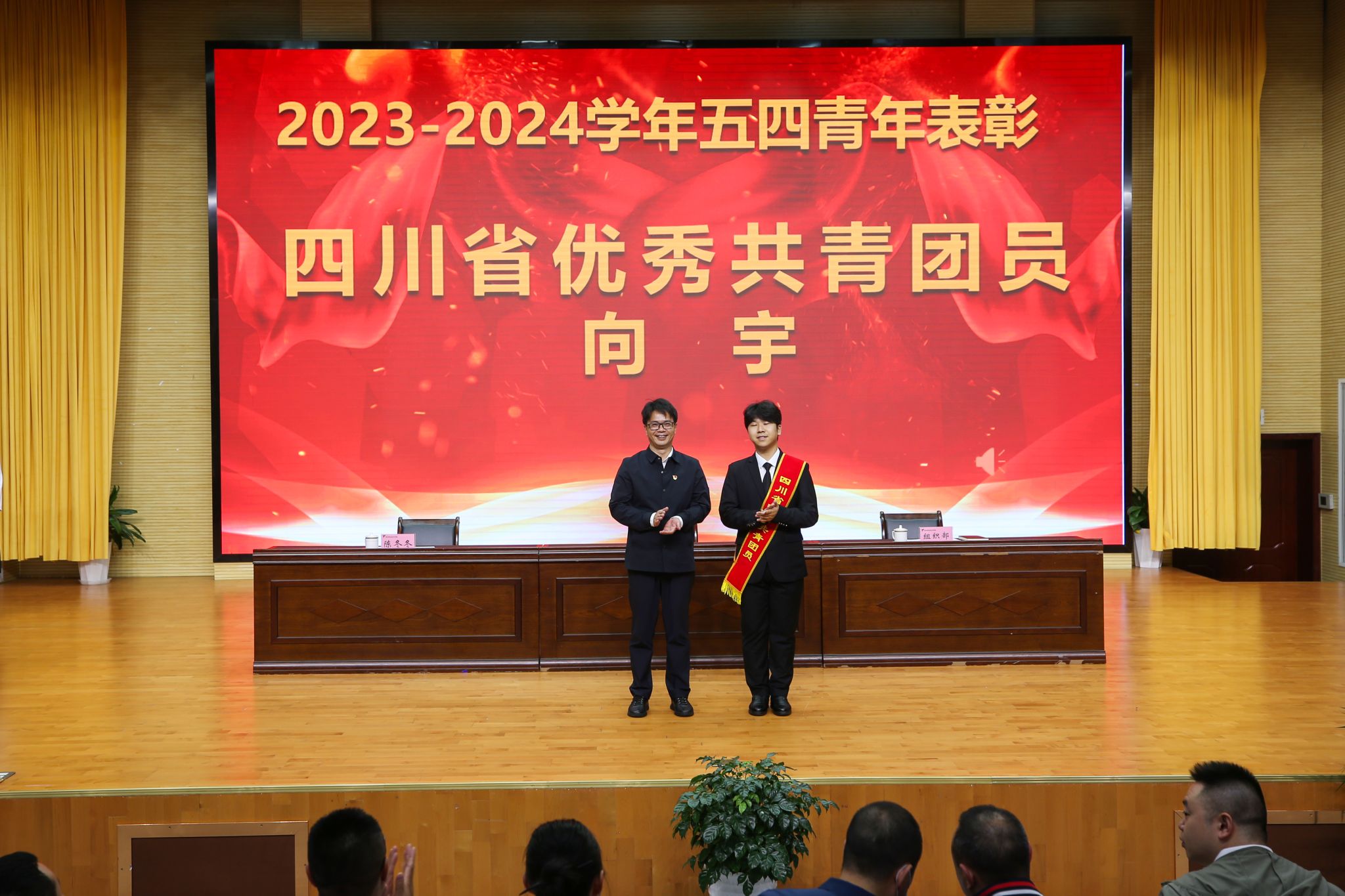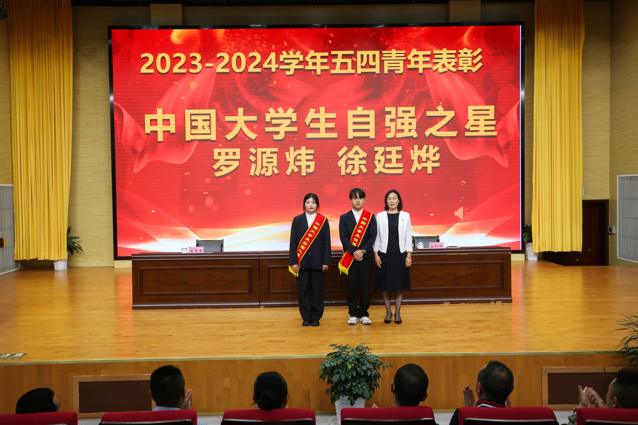 4月30日,学校2023-2024学年五四青年表彰大会在经开区校区聚雅厅顺利举行。学校党委常委、副书记杨洪媛,党委常委、副校长陈冬冬出席大会,院团委副书记郭庆主持活动。