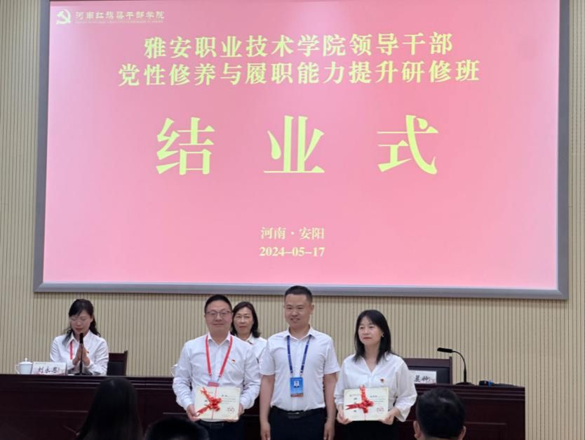 5月17日,学校为期五天的“学习贯彻党的二十大精神 争做忠诚干净担当好干部”领导干部党性修养与履职能力提升研修班结业式在河南红旗渠干部学院顺利举行。学校党委副书记杨洪媛,河南红旗渠干部学院党委委员、纪委书记王晨钟,35名参训学员参加结业式。