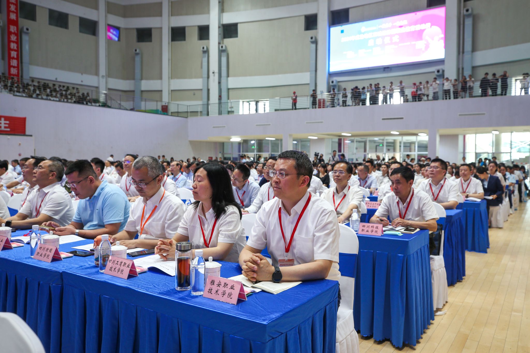 5月17日,以“一技在手,一生无忧”为主题的2024年成渝地区双城经济圈职业教育活动周启动仪式在泸州市举行。本次活动周旨在贯彻落实党的二十大精神和习近平总书记对职业教育工作作出的重要指示精神,全面展现成渝地区双城经济圈职业教育改革创新发展成就,弘扬劳动光荣、技能宝贵、创造伟大的时代风尚,营造人人皆可成才、人人尽展其才的良好环境,展示职业教育“育技能人才 铸大国工匠”的魅力风采,激励广大青年走技能成才、技能报国之路。来自成渝两地的150余所中高职学校的1000余名师生参加启动仪式,有48所职业院校设置独立展台集中展示职业教育改革发展成果,学校党委副书记、校长黄诚带队参展。