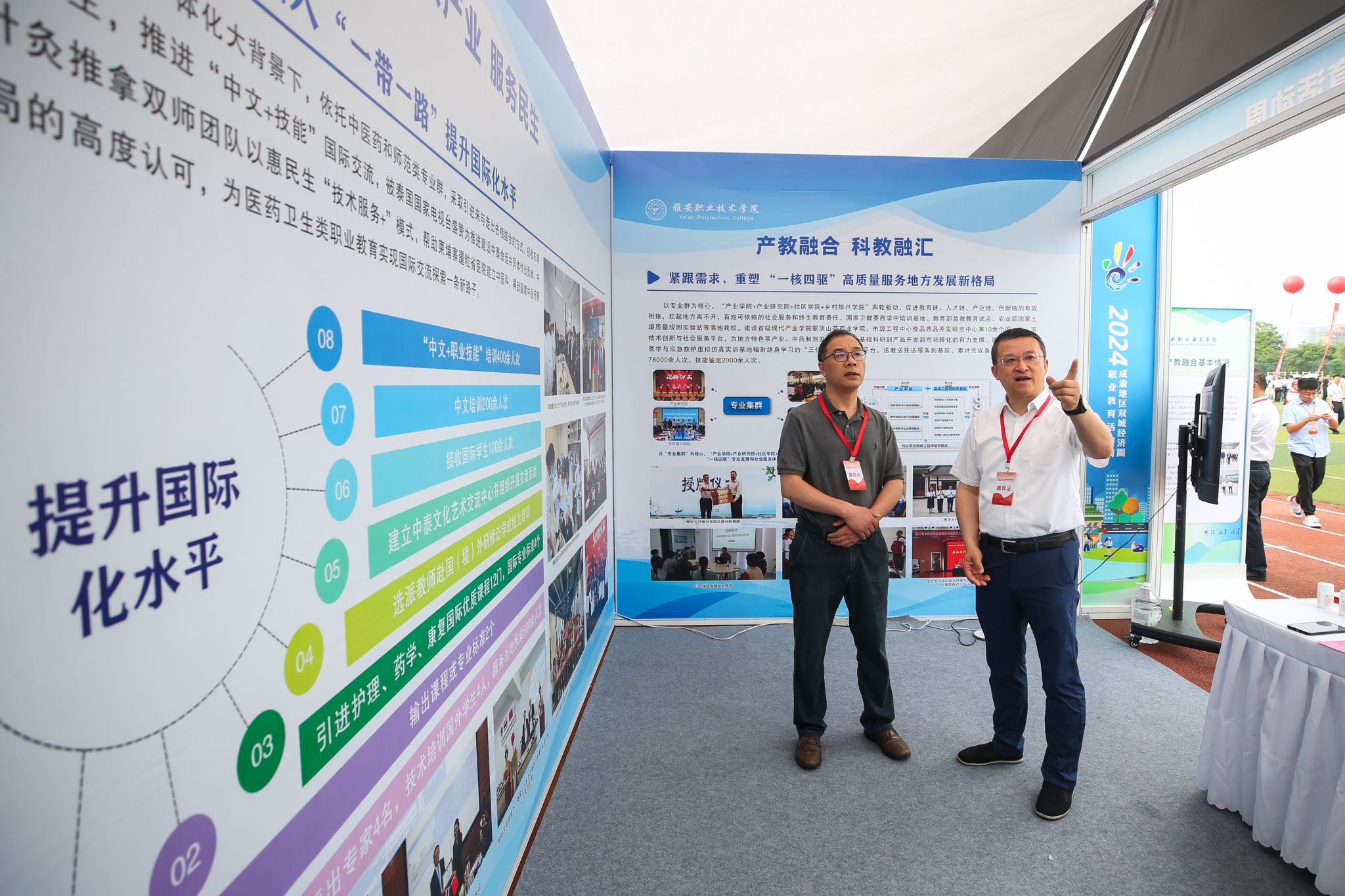 展览期间,教育部职成司办公室一级调研员(主持工作)白维,泸州市人民政府副市长罗素平,四川省教育厅职业教育处处长罗亦凡,教育部教育强国建设战略咨询委员会委员、中国职业技术教育学会第五届副会长、博士生导师孙善学,雅安市人力资源和社会保障局副局长王瑞华,雅安市教育局副局长许江涛等领导到学校展台指导。