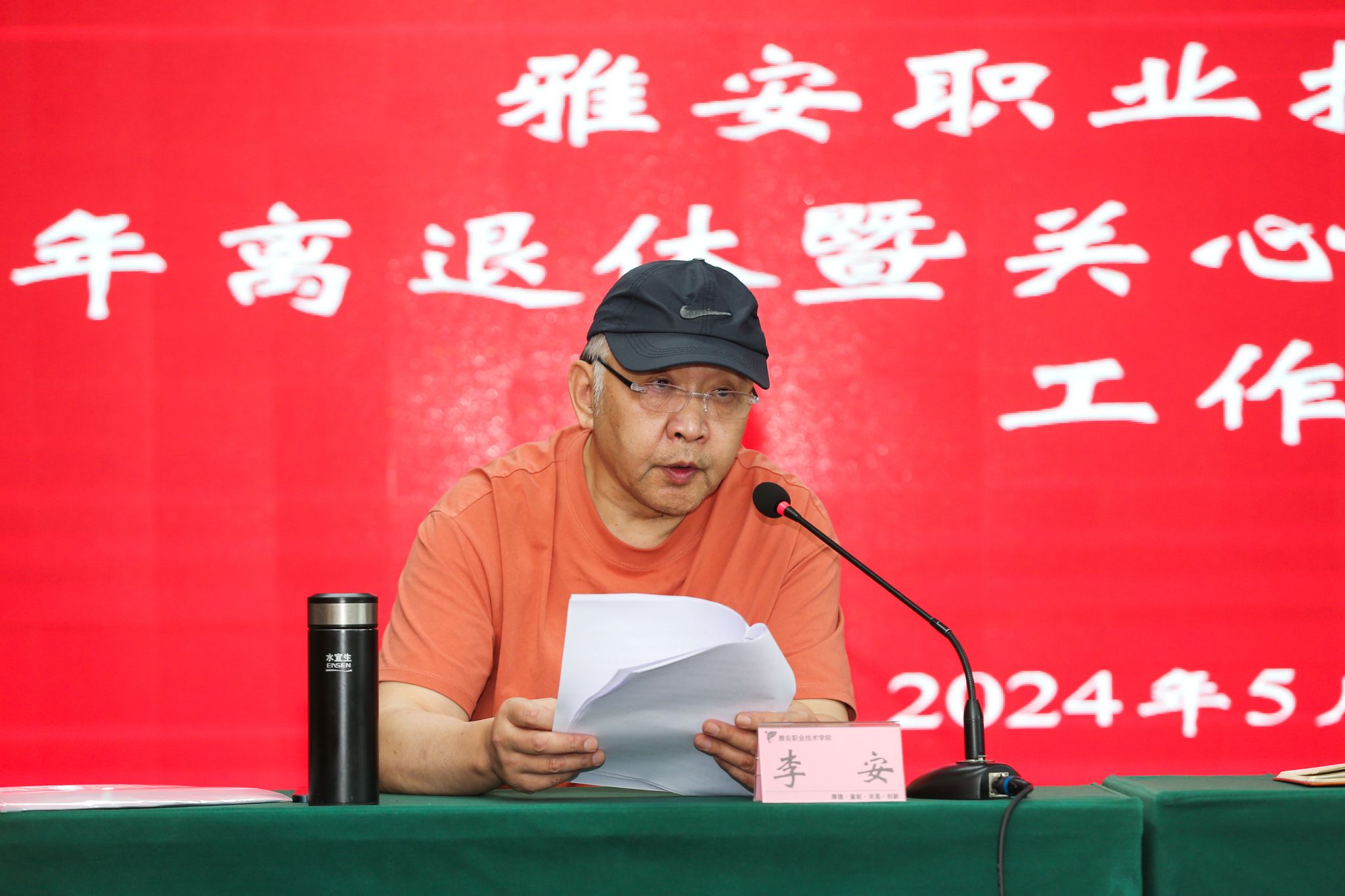 为深入学习贯彻习近平总书记关于老干部工作、关心下一代工作的重要论述和指示精神,扎实开展好党纪学习教育,认真落实全省高校和直属事业单位离退休干部工作视频会议、雅安市老干部工作会议精神,5月28日,学校在青年路校区集雅厅召开2024年离退休暨关工委工作会议。学校党委常委、副校长、关工委主任付洪涛,离退休党总支委员、党支部委员,关工委委员、工作组组长,离退休活动小组组长,各基层党组织负责人、关工委成员部门负责人及关工委工作组联络员等50余人参加会议。会议由学校党委常委、组织部部长、人事处处长刘永恩主持。