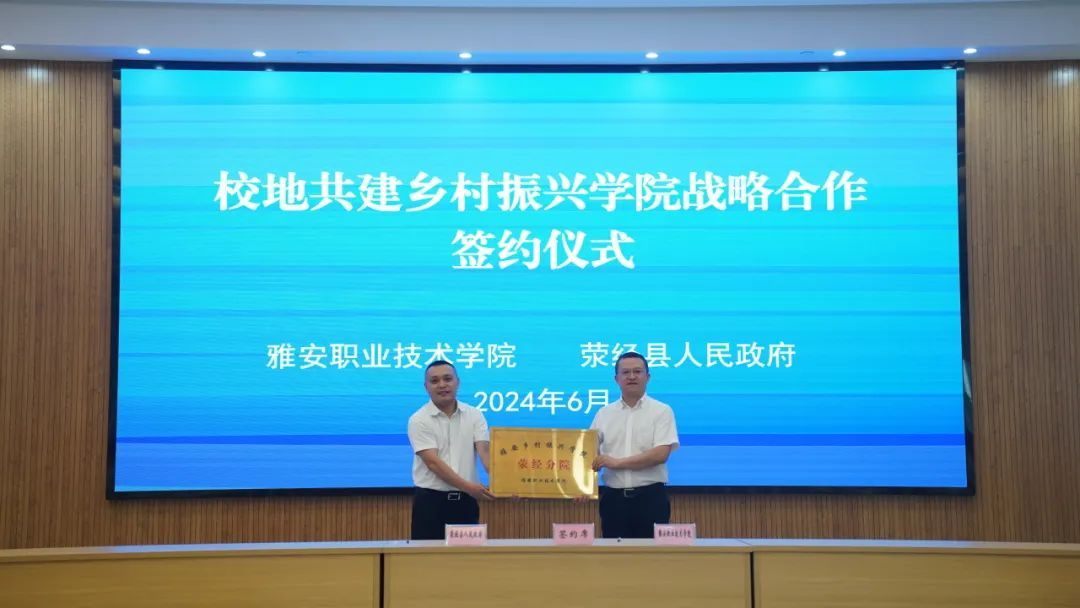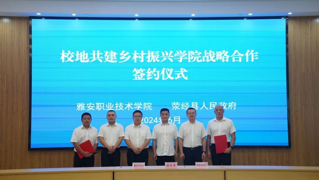6月28日,学校与荥经县人民政府签署校县战略合作协议并举行雅安乡村振兴学院荥经分院揭牌仪式,拉开了校地双方在乡村振兴领域深度合作的帷幕。学校党委书记李春模,党委副书记、校长黄诚,荥经县委书记古玉军,荥经县委副书记、县长饶熹出席签约仪式。