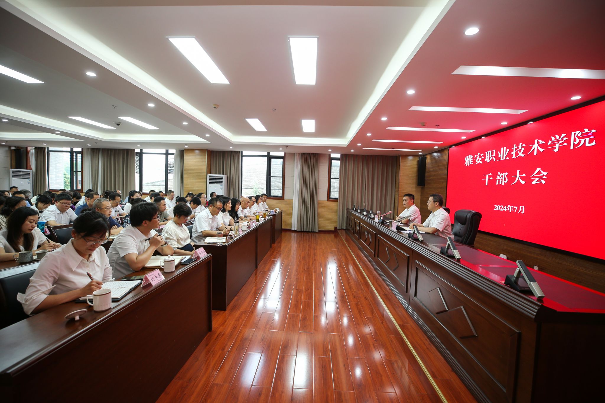7月13日上午,学校在经开区校区综合楼311会议室召开干部大会。学校党委书记李春模主持会议并作总结讲话,党委副书记、校长黄诚对春季学期工作进行了总结并安排部署了暑期工作。全体党政班子成员、中层干部参加会议。