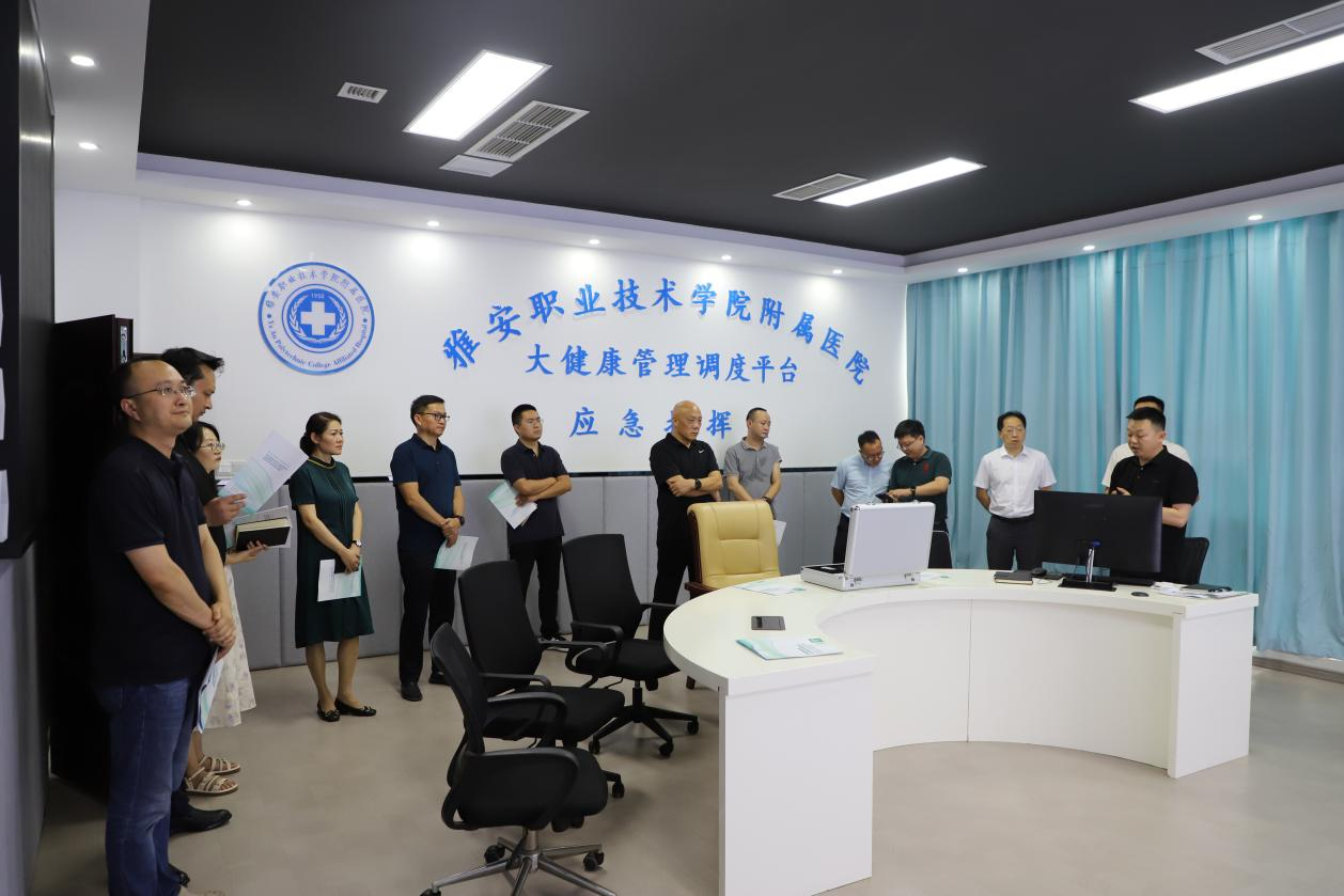 会前,樊正康一行前往学校附属医院门诊楼10楼观看大健康服务管理平台运行情况,对医院智慧医疗健康养老服务管理及医养结合发展模式进行现场调研。调研期间,樊正康与市卫健委、市经信局和市民政局等相关负责人现场交流,并认真听取相关负责人对大健康管理平台建设提出的意见建议。