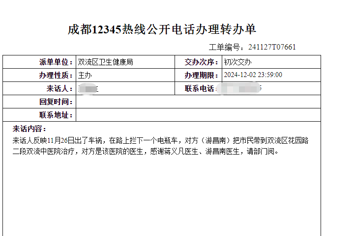 双流区花园路二段的双流区中医院进行救治。