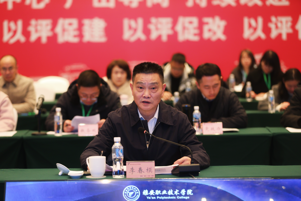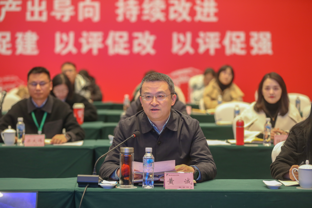 黄诚代表学校对各位专家的辛勤付出、悉心指导表示由衷的感谢。他指出,专家组进行的全方位、立体式、多维度、高水平的“把脉问诊”,提供一份极具指导性、针对性和可操作性的专业建设“体检报告”,为学校进一步深化教育教学改革、夯实学生发展中心理念、明确产出导向标准、建立持续改进的质量保障机制指明了方向。他表示,学校将坚持问题导向,照单全收反馈意见,对标反馈意见,全面推进整改工作,切实做到以认证促进学校的建设和发展;坚持目标导向,加强顶层设计,系统推进专业建设,持续发挥认证的鞭策效应、示范效应、联动效应,全方位提范类专业内涵;坚持科学评价,深化教育教学改革,以此次专业认证为契机,以数字化转型和完善教育评价为方向,以“新双高”建设为牵引,深入推进教育教学综合改革,不断完善教学质量评价及改进机制,引导教师及时更新教育理念,创新教学方法,推动专业融合式发展,着力打造更多办学特色和亮点,做实雅职教育品牌,努力走好内涵式高质量发展之路。