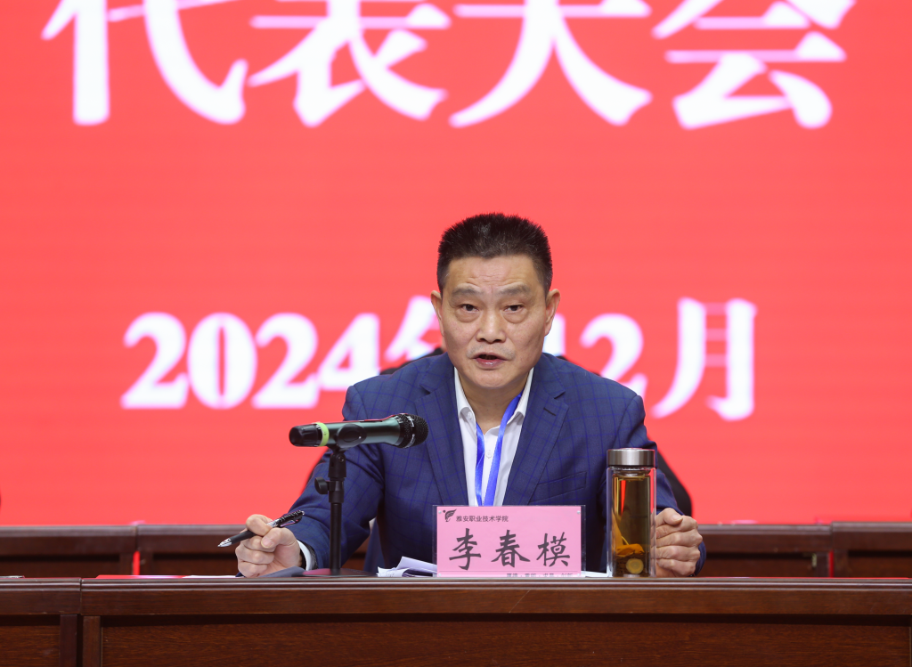 结合新时期进一步推动学校改革创新和高质量发展需要,李春模向与会代表提出三点希望:一是要突出“高起点”,学在先、谋在前,进一步增强工作规划的前瞻性。要坚定以习近平新时代中国特色社会主义思想为指导,不断增强“四个意识”和思维能力,持续加强对职业教育政策制度和行业产业发展的学习、理解和把握,始终做到方向明确、头脑清醒、应对有方、行动有力;二是要突出“高水平”,抓落实、提效率,进一步增强工作执行的时效性,推动“目标”减负、“考核”减负、“事项”减负、“程序”减负和“时间”减负;三是要突出“高品质”,强协同、创品牌,进一步增强工作成果的示范性。要进一步聚焦融合发展、数字化发展,更加积极主动联动协同起来,对标竞进、争创一流,更加有力支撑起学校高质量发展。李春模强调,改革再出发,唯奋楫者先,唯创新者强。希望全体教代会代表发挥聪明才智,为学校发展积极建言献策,立足岗位建功立业。并号召全体教职工要更加紧密地团结在以习近平同志为核心的党中央周围,在省委教育工委和雅安市委的坚强领导下,不畏艰险、砥砺前行,努力为建成特色鲜明高水平高职院校而团结奋斗。