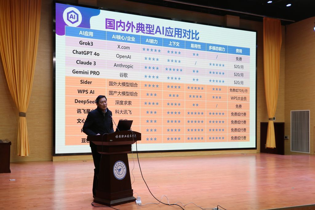 天堰科技医学教育研究院李智高副教授深入分析了人工智能技术的发展趋势,并生动演示了人工智能在教学中多场景的辅助作用程。他指出,人工智能作为新技术不仅为教师职业发展提供了新动能,还给职业教育带来了深刻的变革。参会教师通过李教授的讲解,直观感受到AI赋能教育的广阔前景与无限潜力,并对各AI平台对优化教学方法、提升工作效能的支撑度有了进一步了解。