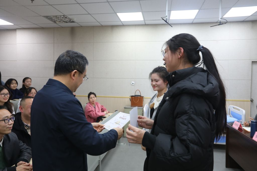 黄诚及与会嘉宾为护理联办本科班在2024年度表现突出的学生进行了表彰。8名“优秀学生”、4名“优秀学生干部”获颁荣誉证书;20名学子分获学院一、二、三等奖学金,另有2名同学凭借综合表现荣获“企业奖学金”。优秀学生代表王倩发表获奖感言。