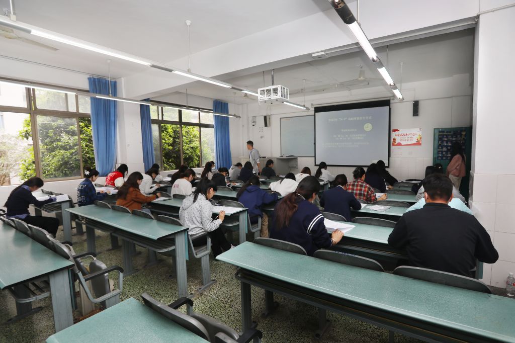 考试包含文化知识综合笔试和技能测试两个环节。当天上午,考生们早早到达学校,在志愿者的引导下,从容有序进入文化知识综合笔试考场。下午,技能测试在青年路校区教学楼B栋进行。