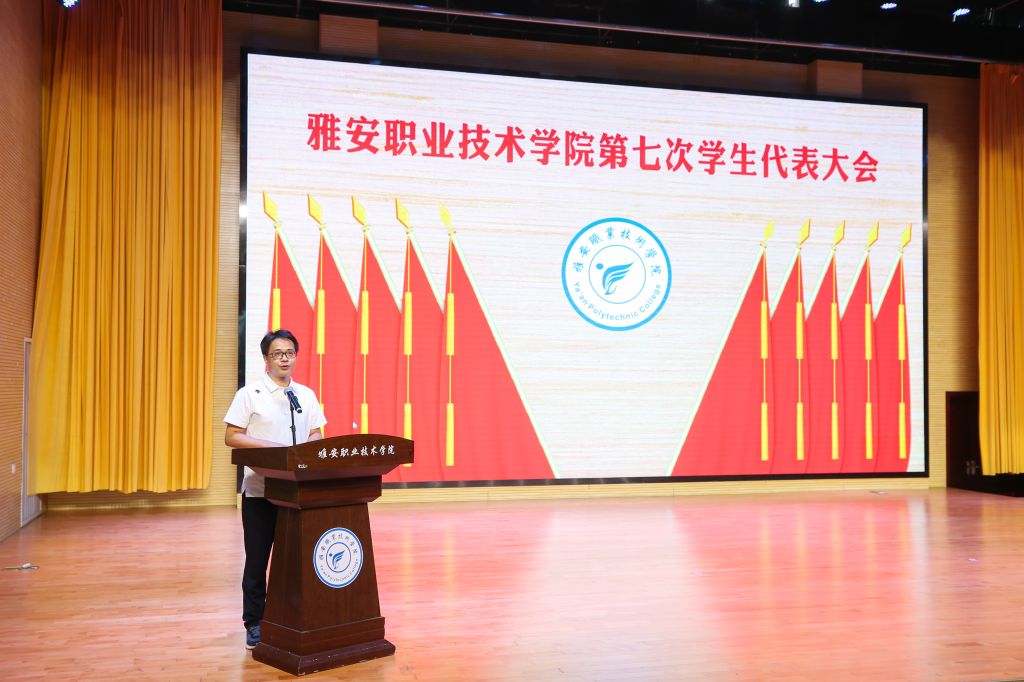6月17日,学校第七次学生代表大会在经开区校区聚雅厅顺利举行。学校党委常委、副校长陈冬冬参加开幕式并讲话,团委、学生处负责人,二级学院党组织负责人,团总支负责人,学生代表200余人参加大会。