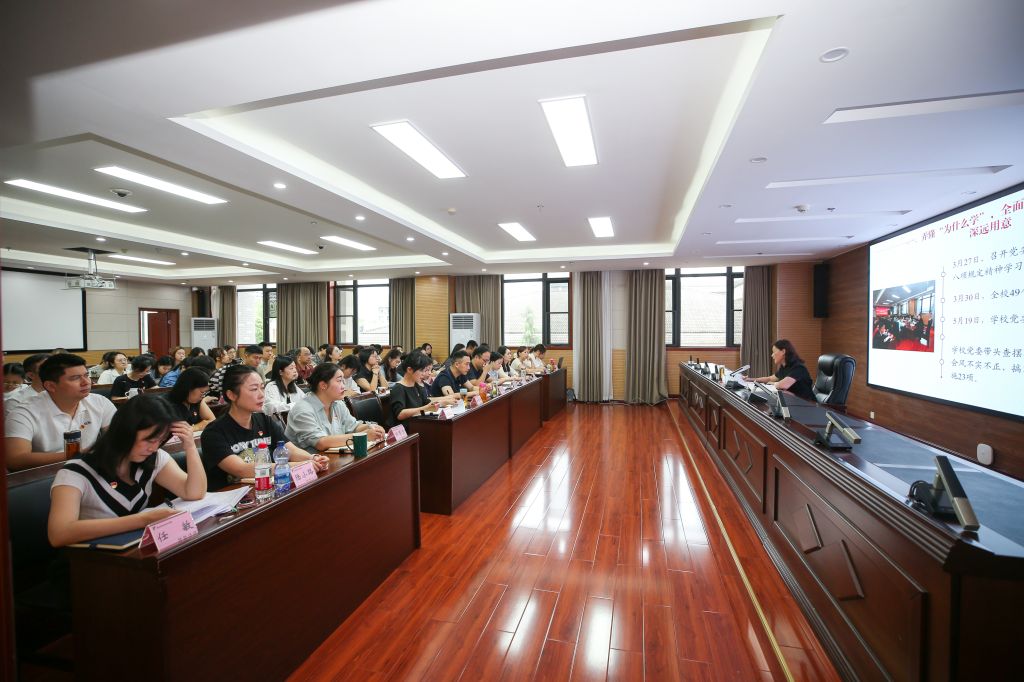 为深入贯彻中央八项规定精神学习教育,持续筑牢思想根基,强化行动自觉,6月19日,学校党委副书记杨洪媛在经开区综合楼 311 会议室,为新提拔干部、年轻干部、关键岗位干部代表以及党群党总支、基础医学院直属党支部全体党员共80余人讲授“深化作风建设 践行使命担当”专题党课。