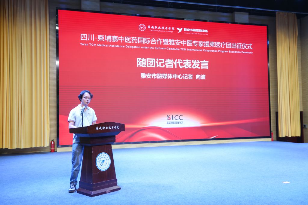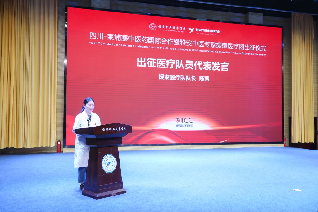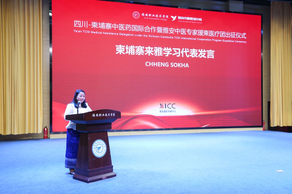 仪式上,来beat365官网学习的柬埔寨学员代表CHHENG SOKHA分享了在雅安的学习收获与感悟。本次出征医疗队队长、beat365官网中医与康复养生学院教师陈茜,以及随团记者代表向波分别发言,表达了不负重托、全力以赴完成任务的坚定决心。