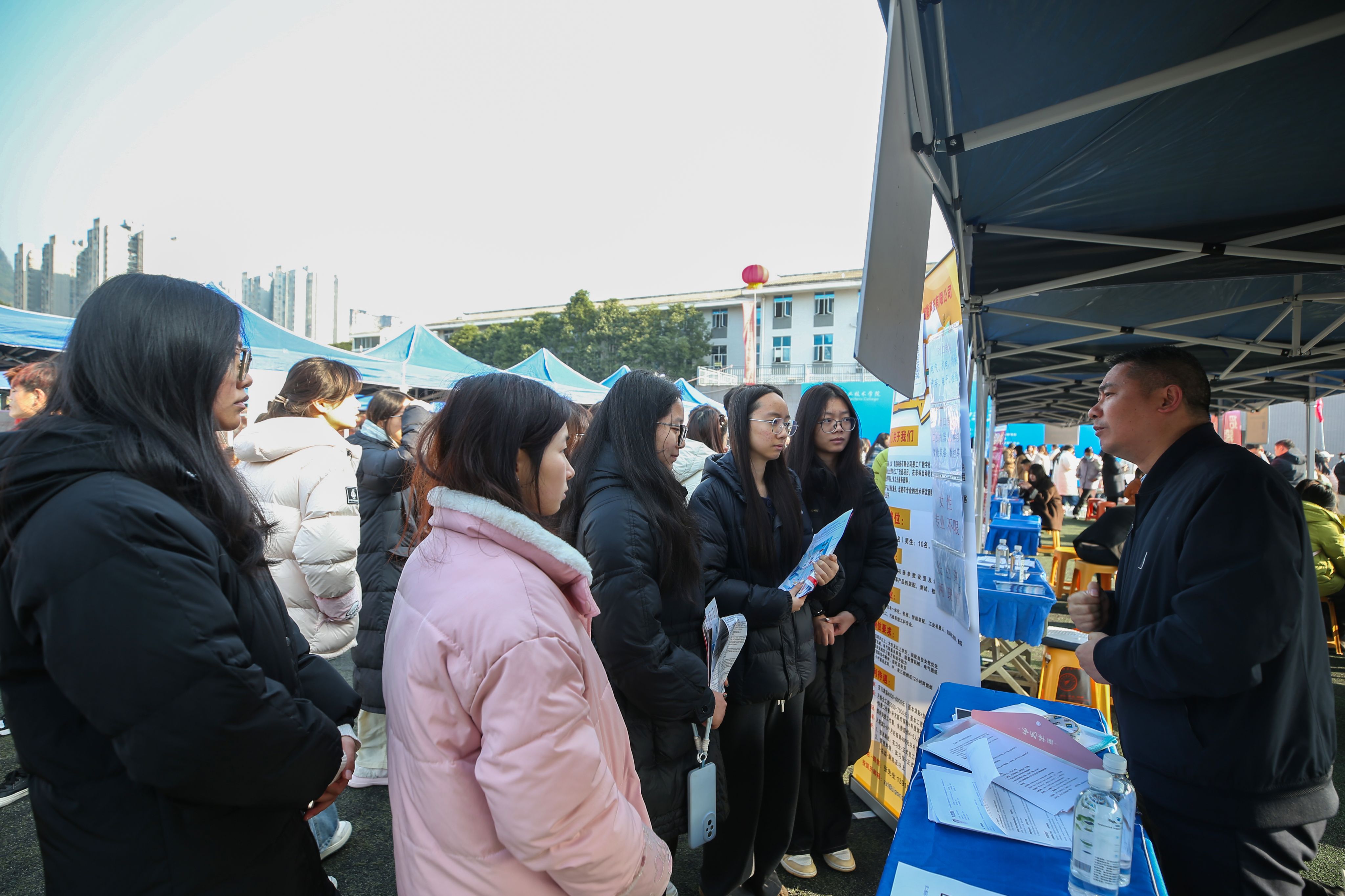 为提升对接实效,活动现场设立了多个功能专区,包括就业指导服务、求职心理与权益维护、校企供需洽谈、基层就业政策宣传、毕业生就业创业典型展示、专升本政策咨询、学生技能展示以及应征入伍宣传等。现场还贴心设置了“简历门诊”,为毕业生提供一对一求职材料优化服务。