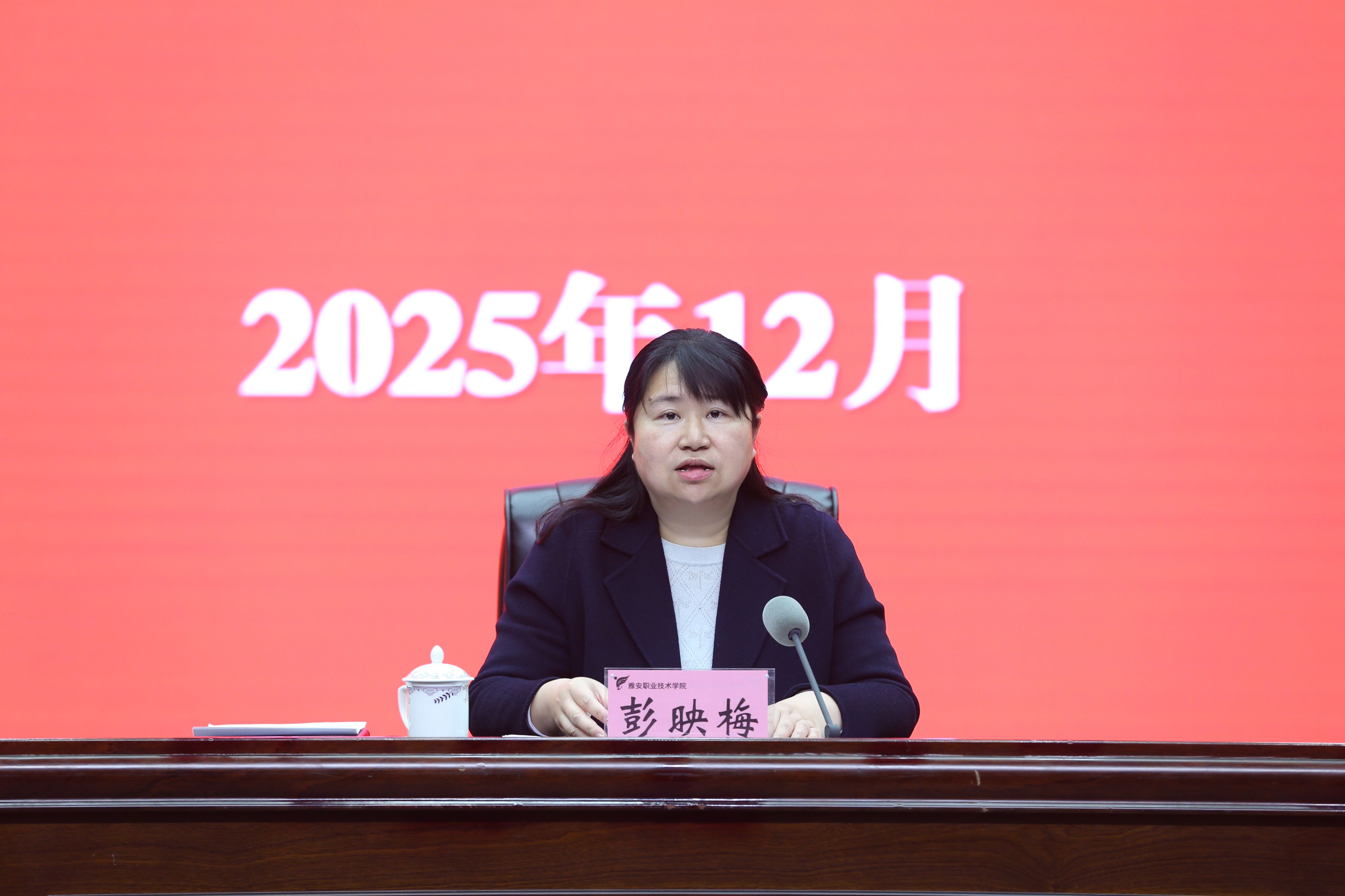 彭映梅指出,党的二十届四中全会对未来五年发展作出顶层设计和战略擘画,是乘势而上、接续推进中国式现代化建设的又一次总动员、总部署。省委十二届八次全会明确了“十五五”时期四川发展的战略使命和主要目标,为我们落实中央部署、推动地方发展提供了重要遵循。市委五届八次全会科学谋划了“十五五”时期雅安经济社会发展的总体思路、发展目标、实现路径和着力重点等,为雅安高质量发展擘画了清晰的“路线图”、制定了厚重的“任务书”。对标部署安排,青年学子技能成才的舞台更广阔、创新创造的空间更充足、干事创业的环境更优化,真诚期盼雅职院的青年学子学在雅安、留在雅安、建设雅安,做“心怀家国的追梦人”“本领过硬的实干家”“敢想会创的开拓者”,在雅州大地放飞青春梦想、书写人生华章。
