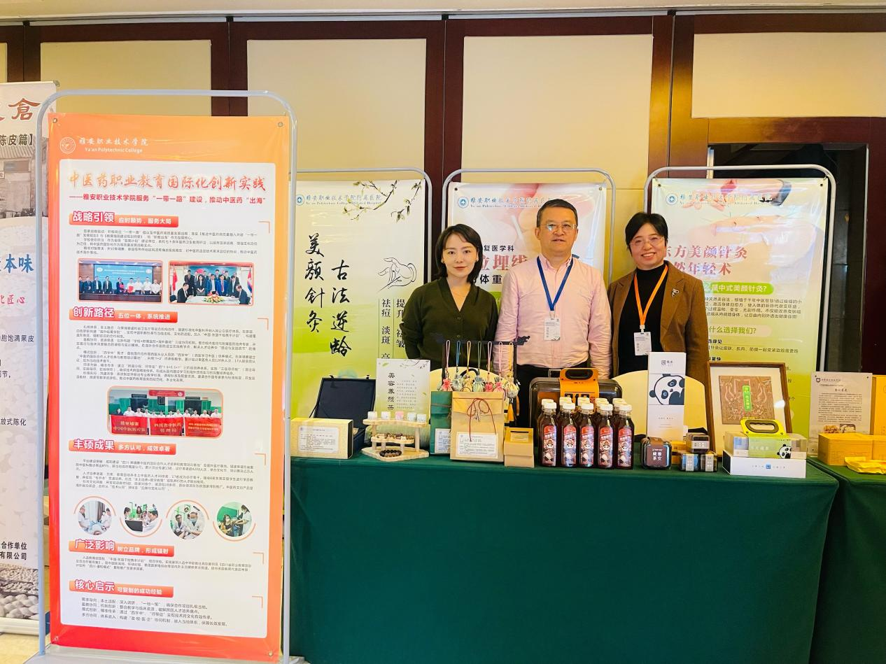 在大会交流环节,beat365官网代表积极展示办学成果,重点推介了学校独具特色的 “技术服务+职业培训”职业教育出海模式,分享了中医药国际推广与职业技能培训的“雅职经验”。现场,beat365官网通过校企合作产品、附属医院特色制剂等实物,生动呈现了在中医药临床转化与服务地方健康产业方面的扎实探索,吸引了全国同行的广泛关注。