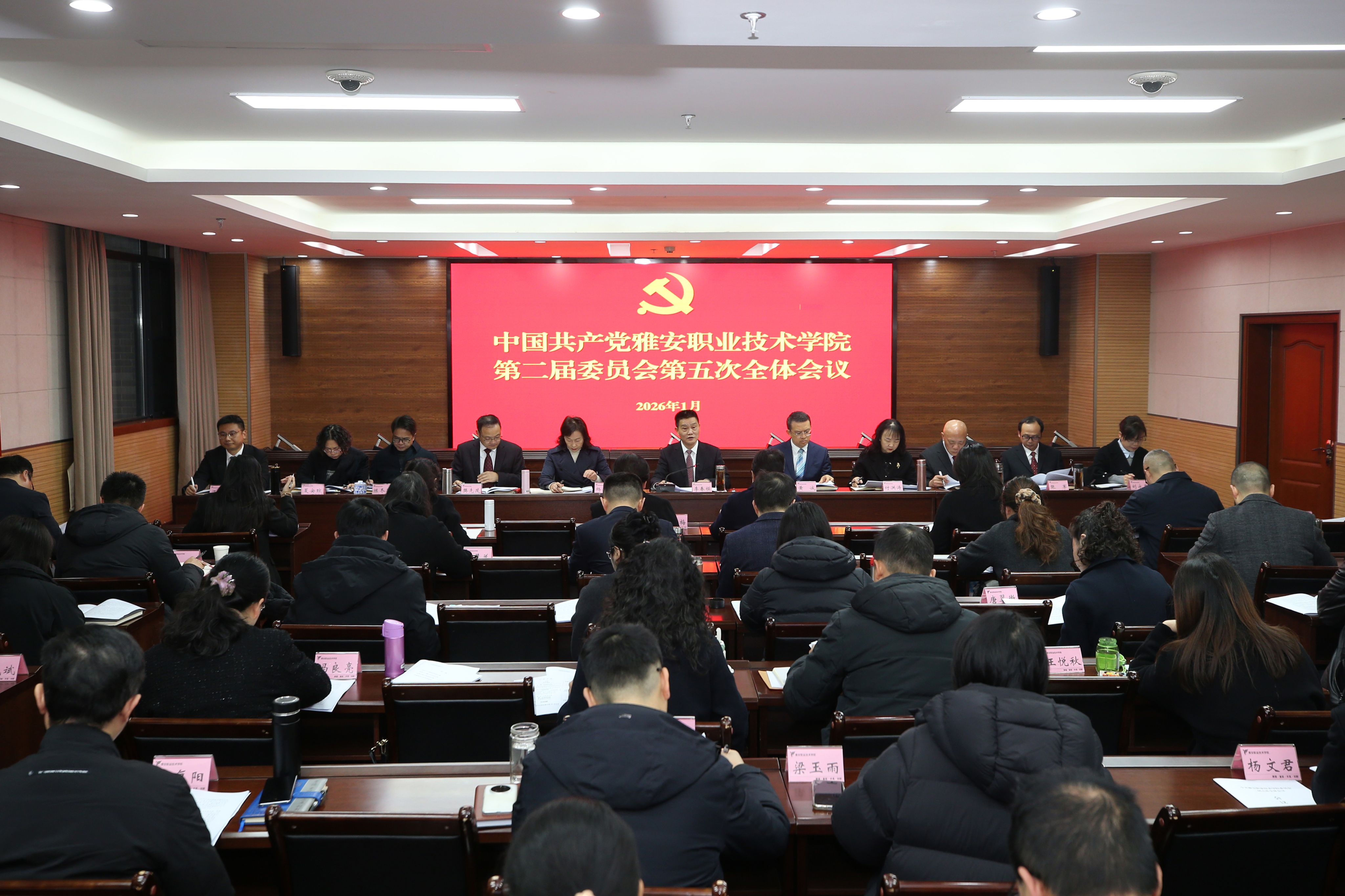 1月19日,学校党委二届五次全体会议在经开区校区召开。会议深入学习贯彻党的二十届四中全会、省委十二届八次全会、市委五届八次全会和市委经济工作会议精神,系统总结学校“十四五”发展成效,科学谋划“十五五”发展蓝图。学校党委书记李春模代表校党委常委会向全委会作《关于<beat365英国官方网站“十五五”事业发展规划>编制工作情况说明》并讲话。全体党委委员出席会议;校纪委委员,非“两委”委员的校领导、中层正职及负责日常工作的副职干部,产业学院、资产公司负责人及部分教师代表列席会议。