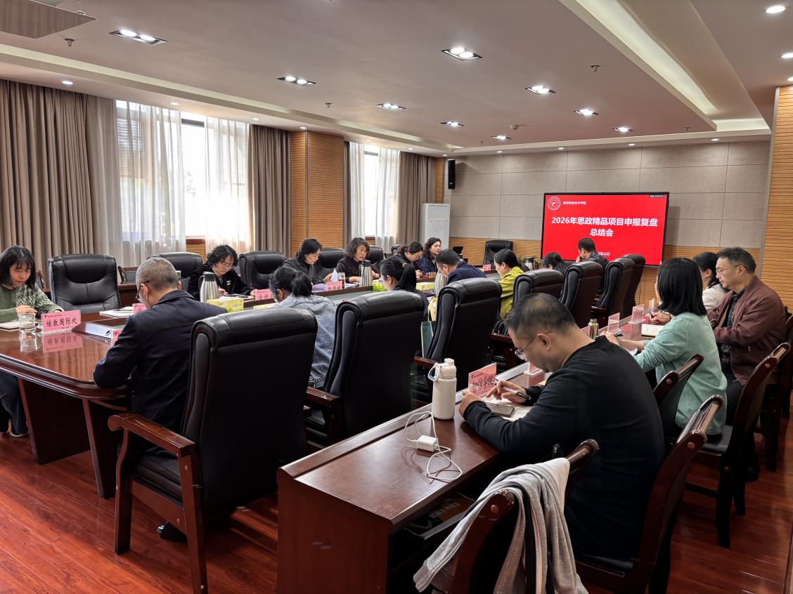 在2026年思政精品项目申报复盘总结会上,夏安琼介绍了本年度学校申报省级思政精品项目的整体情况,分析了本次申报工作推进中的优势和短板。五位立项主持人分别从团队组建、选题站位、文本打磨等进行了经验分享,并分析了存在的问题和下一步努力的方向。