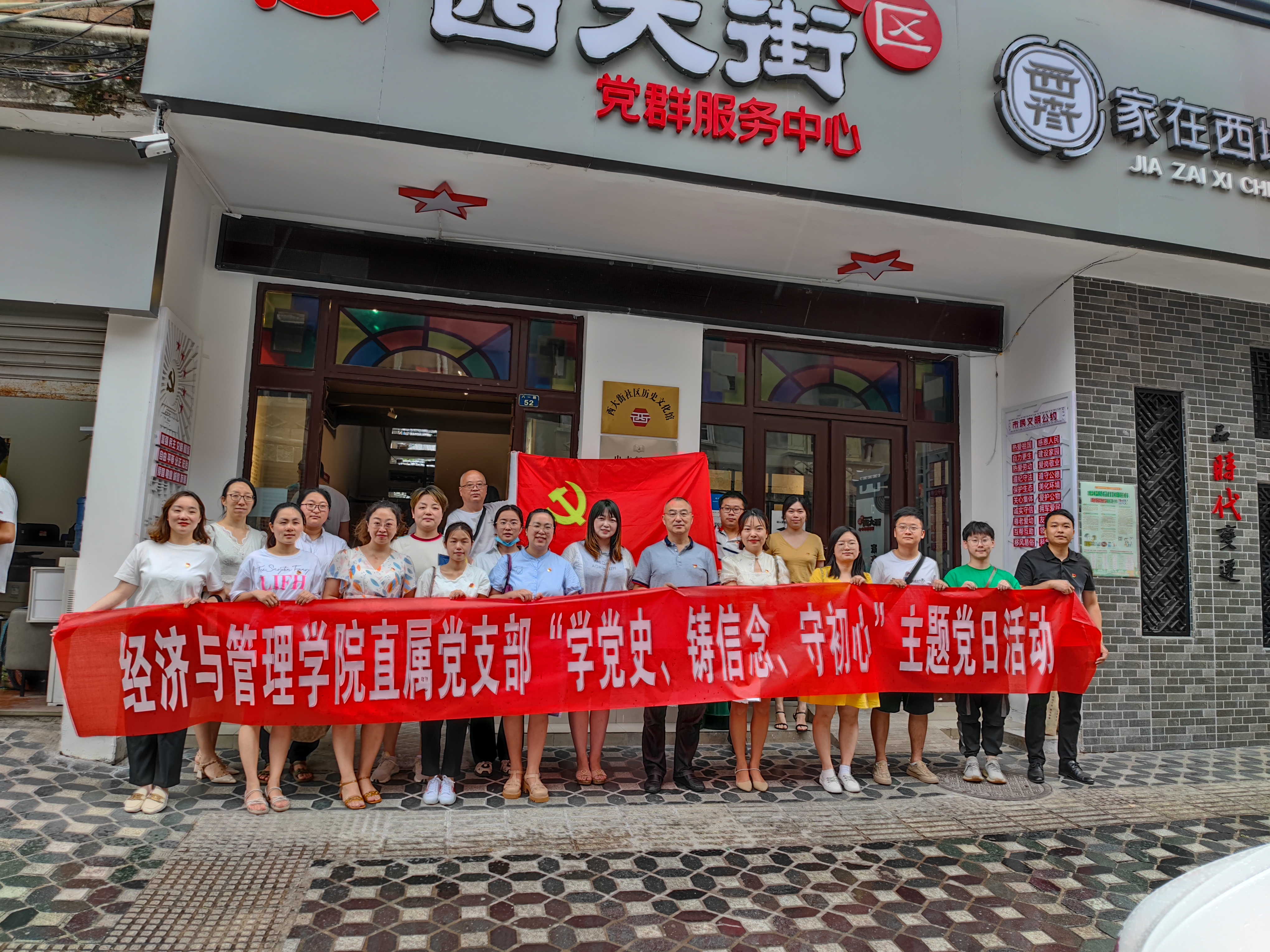 为庆祝中国共产党成立101周年,喜迎党的二十大,6月30日下午,经济与管理学院直属党支部组织党员教师们前往西大街社区历史文化馆开展“学党史、铸信念、守初心”主题党日活动。