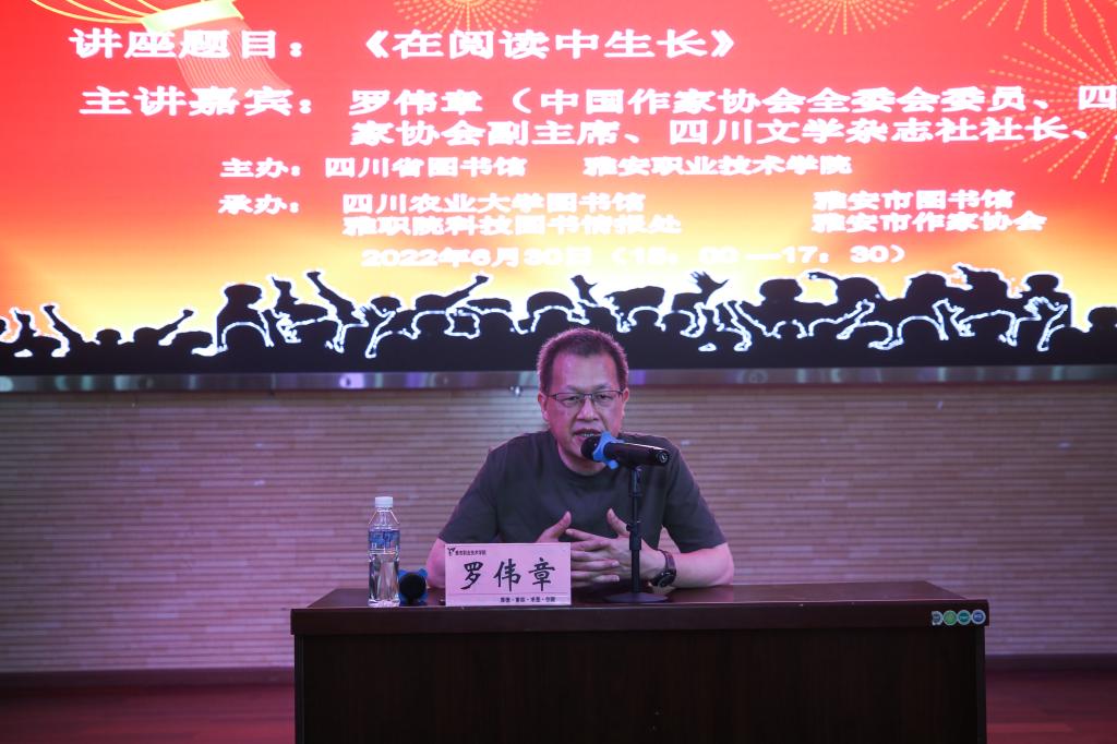 6月30日下午,由四川省图书馆、学院主办的“成渝经济文化大讲堂”第四期在beat365英国官方网站青年路校区汇雅厅举行。讲座由中国作家协会全委会委员、四川省作家协会副主席、《四川文学》杂志社社长、《四川文学》主编罗伟章先生主讲,学院党委委员、宣传统战部部长郭英才主持了此次讲座。雅安市图书馆、雅安市作家协会、雨城区作家协会等单位代表以及学院三百余名师生参加了讲座。