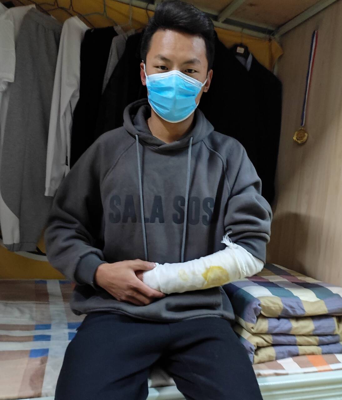 看到火情得到控制,鲁绒近波同学便悄悄离开,前往医院处理烧伤的左臂,经诊断左臂为深二度烧伤。事后,那些被他救出的人,想再次当面感谢他,经过多方询问,才知道他原来是我院的学生。师范学院了解到这个情况后,第一时间联系到他,关心其身体情况,了解了事情的经过,谈到当时冲进去时的感受,他说:“事后想想还是挺后怕的,如果那天让我考虑五分钟再做决定,或许我不敢冲进去,但是当时完全出于本能,我只知道要救人”。