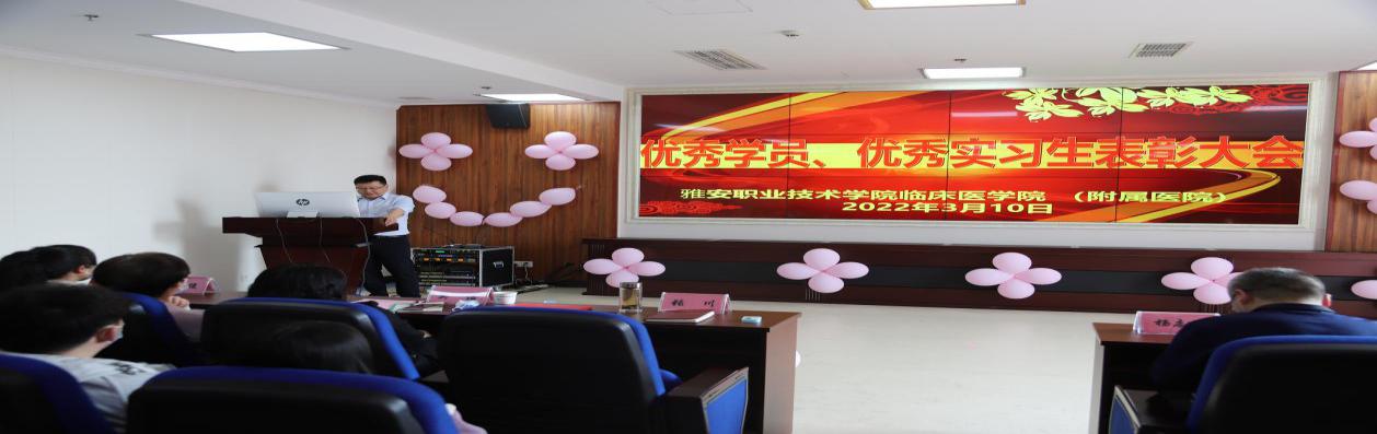 3月10日,临床医学院(附属医院)在门诊楼十楼学术厅召开2021-2022年度优秀学员、优秀实习生表彰会。临床医学院(附属医院)院长张川、党总支副书记吴洁、副院长杨志伟,组织人事科、医务科、护理部负责人及部分带教老师、学员及实习生参加本次大会。