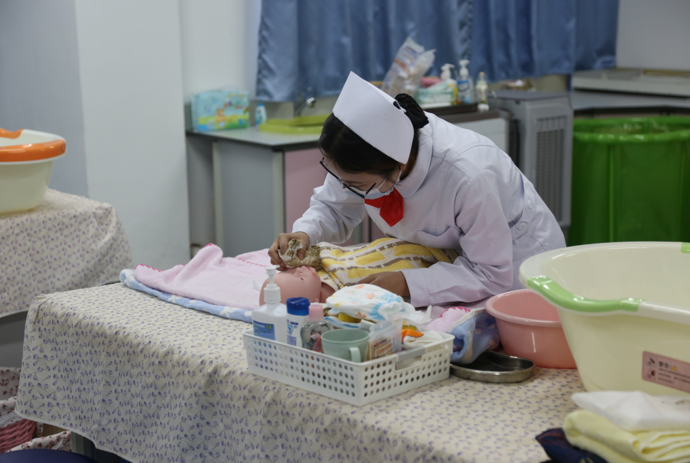 母婴护理职业技能等级(中级)证书考试分为理论和实操两部分。认证考试过程中,护理学院教师相互协作、紧密配合,克服了时间紧、任务重等困难,在较短时间内高质量地完成了考场布置、学生动员和考务人员培训等各项工作,确保了考试工作的有序进行。整个考试流程清晰,有条不紊,学生们娴熟的技法、贴心的护理赢得考评员们一致好评。