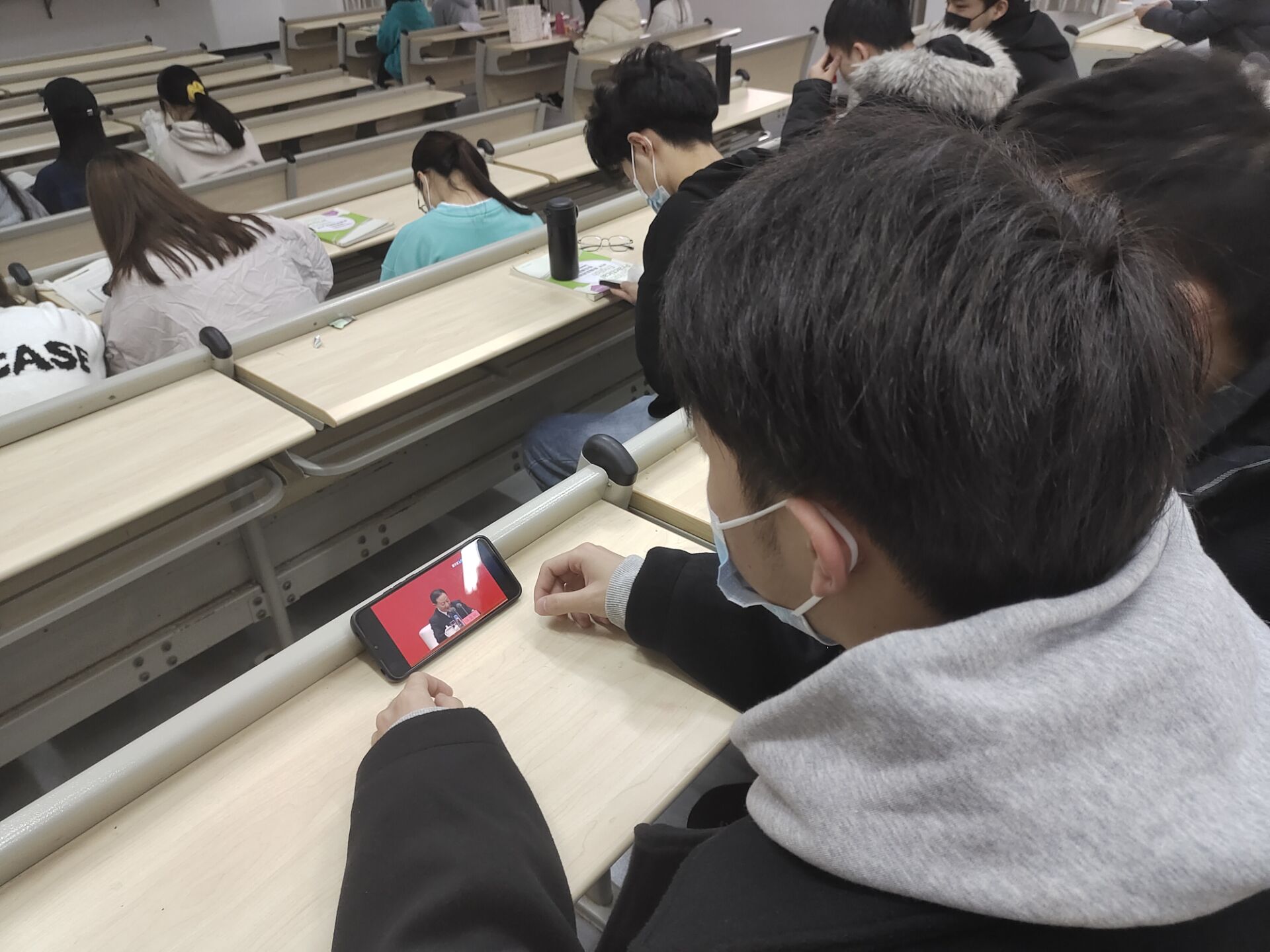 同学们通过线上线下相结合的方式认真观看十九届六中全会新闻发布会,集中学习会议公报,深刻领会百年来党领导人民进行伟大奋斗的历史和我国进入新发展阶段的重大意义。学习过程中,同学们看得认真,听得仔细,并积极就公报内容展开热烈讨论。