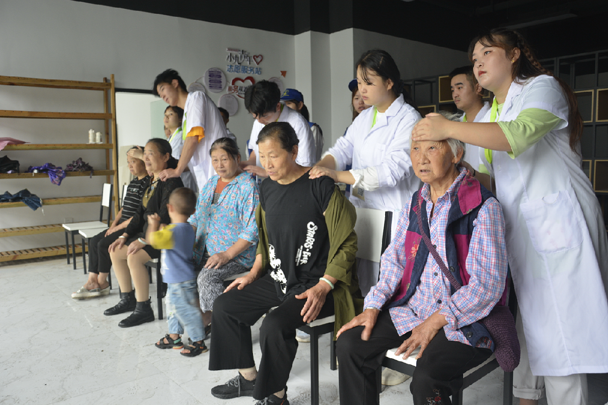在活动中,学生志愿者利用所学的中医知识为社区群众进行健康科普,并给有需要的群众提供了艾灸、推拿等服务。据统计,本次义诊活动共服务安置小区的群众55人次。
