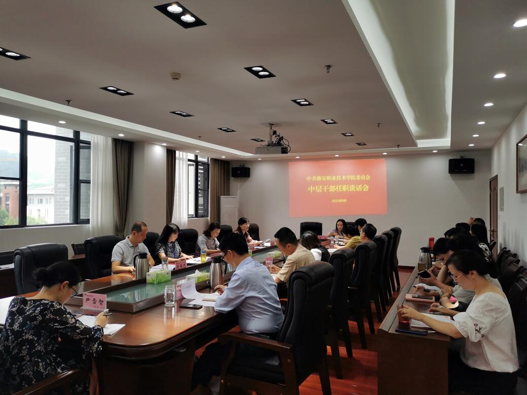 9月9日,学院在经开区校区综合楼518会议室召开轮岗中层干部任职谈话会。学院党委副书记付洪涛,党委委员、纪委书记杨洪媛出席会议并讲话,党委委员、组织部部长、人事处处长刘永恩主持会议。8名轮岗交流干部和相关部门负责人参加会议。