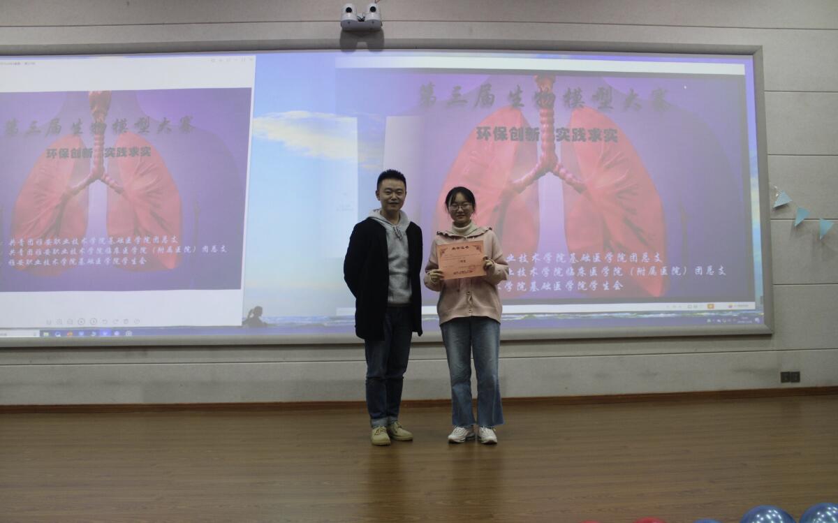 本次生物模型大赛既提高了学生的实际动手能力,又培养了学生自我创新环保意识,在废物利用的同时提高了学习兴趣,让同学们真正做到学以致用。