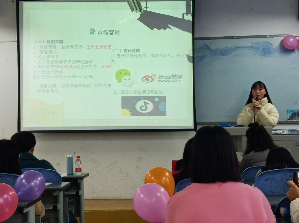 大赛在图附204教室拉开帷幕。经前期宣传、报名、初选,共八个参赛团队进入决赛。各参赛选手和团队通过制作策划书、PPT演讲、现场答辩、VCR展示等多种方式展示了他们创新思路和创业计划。他们对创业的激情、对生活的关注热爱和解决问题的奇思妙想赢得了场下评委和观众的阵阵掌声。其中第五组参赛团队的“全自助厨房”主题小店,源于生活的创意给人耳目一新的感觉。第七组参赛团队的“冰激淋蛋糕店”也令人惊艳。评委老师的点评犀利到位、直击症结,为各参赛团队提供了有针对性的意见建议,达到了有效的思维碰撞。