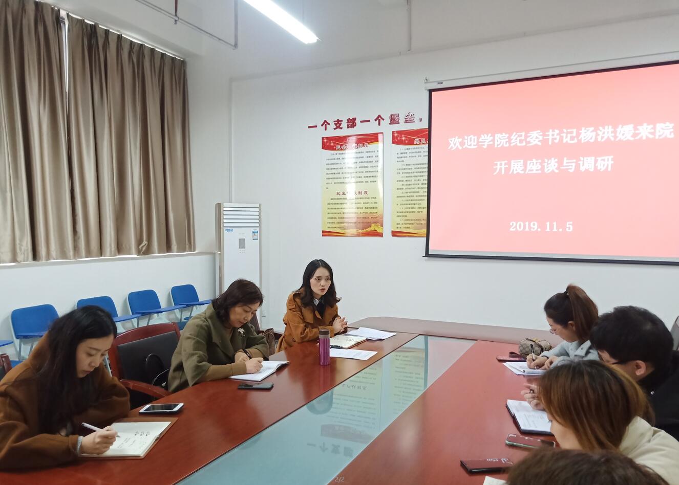 11月5日,党委委员、纪委书记杨洪媛到经管学院开展“不忘初心,牢记使命”主题调研活动。经管学院党支部书记高运荣、副书记任敏,副院长李柚,旅游管理教研室主任锋林老师及旅游管理专业教师参加了此次座谈。